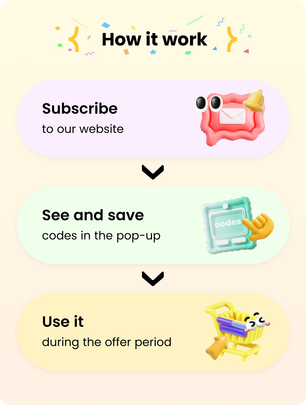 1. Each discount code is limited in quantity and can be used only once per subscribed user.